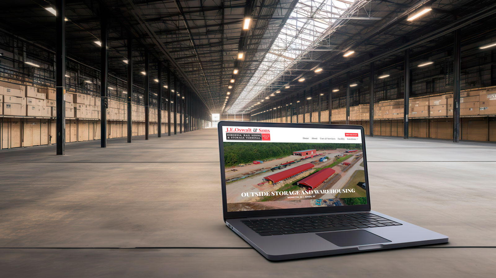 Hibernia Rail Siding & Storage Terminal is a division of J.E. Oswalt & Sons Heavy Hauling & Rigging, Inc. who is also a customer of Colophon. THey provide a storage facility that is serviced by a rail line, and is located between Columbia, SC and Augusta, SC.
